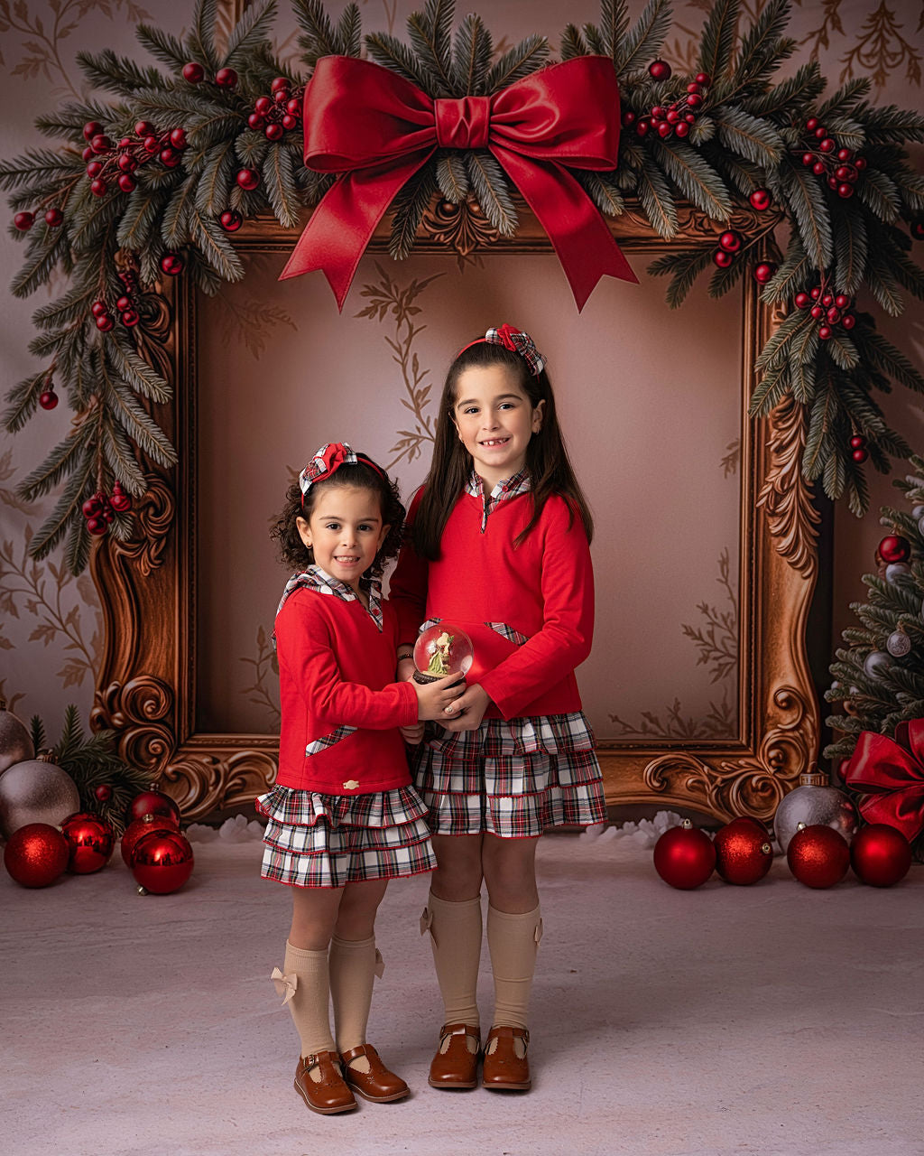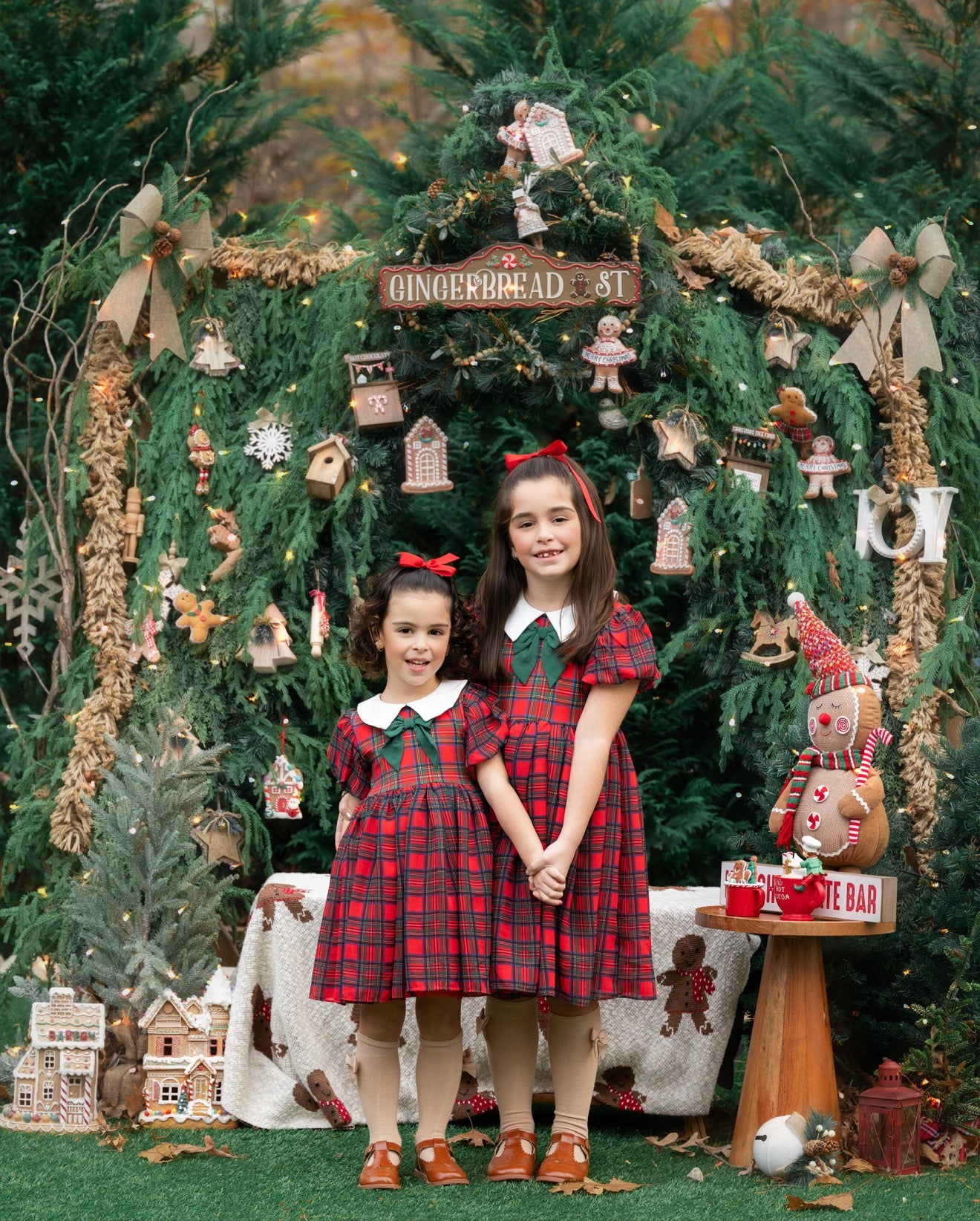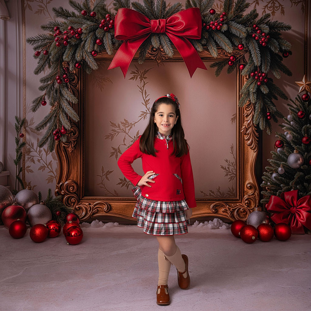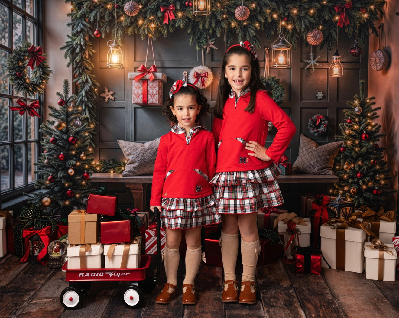 Miranda red and white checkered hoodie dress for girls, made in a soft cotton blend. It has a ruffled checkered bottom and checkered lining hoodie with front buttons. Soft voile lining for comfort.